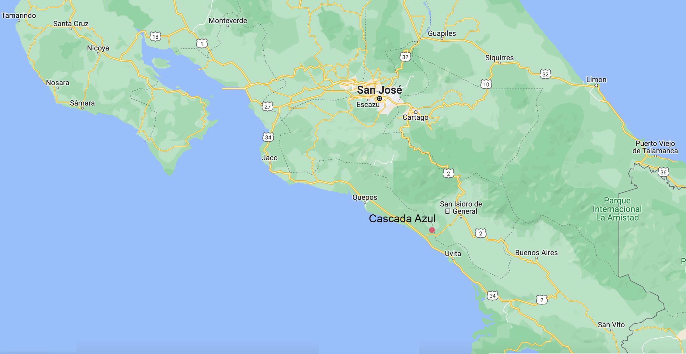 Cascada Azul is situated in the mountains in Costa Rica’s South Pacific region, seven kilometers from the Pacific Ocean. Enjoy world-class surf, multiple activities, palm-fringed beaches, grocery stores, and banks which are just a short drive away. To visit Cascada Azul, travel 1500 meters east of Bar El Chicote on Calle Farallas (just 10 minutes up the mountain). WAZE Directions